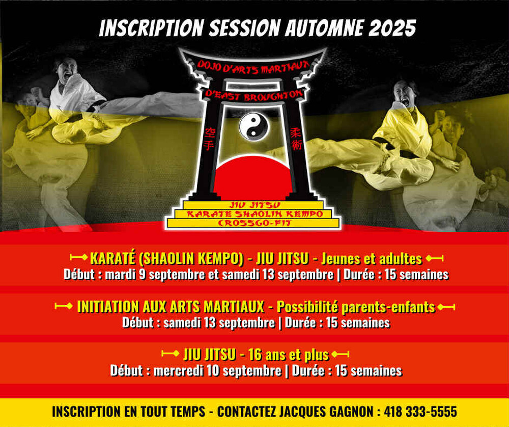 Début des cours : 5 octobre au 14 décembre (10 cours)